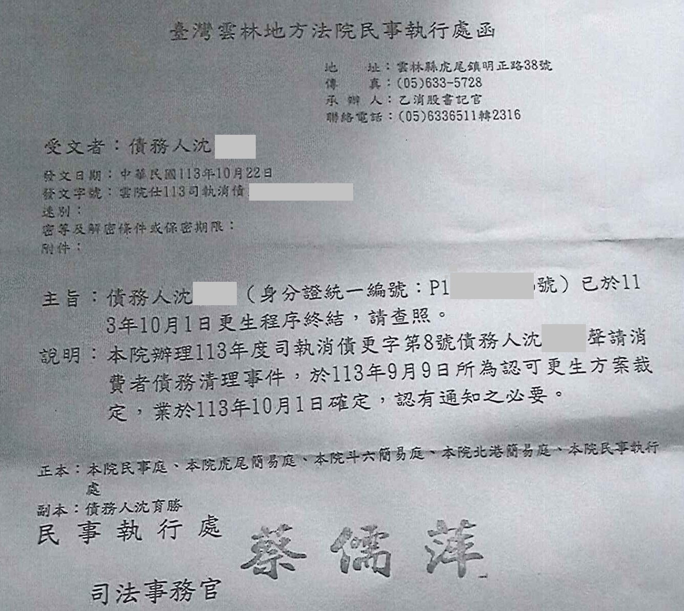 法院更生程序條件,更生流程免費諮詢PTT,債務協商不成立,銀行強制執行扣薪,消費者債務清理條例,卡債整合成功案例