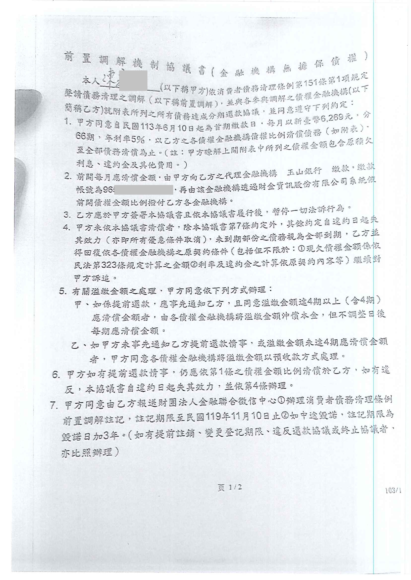 花旗銀行債務協商機制前置協商核准60期利息減免至0%月繳2953元