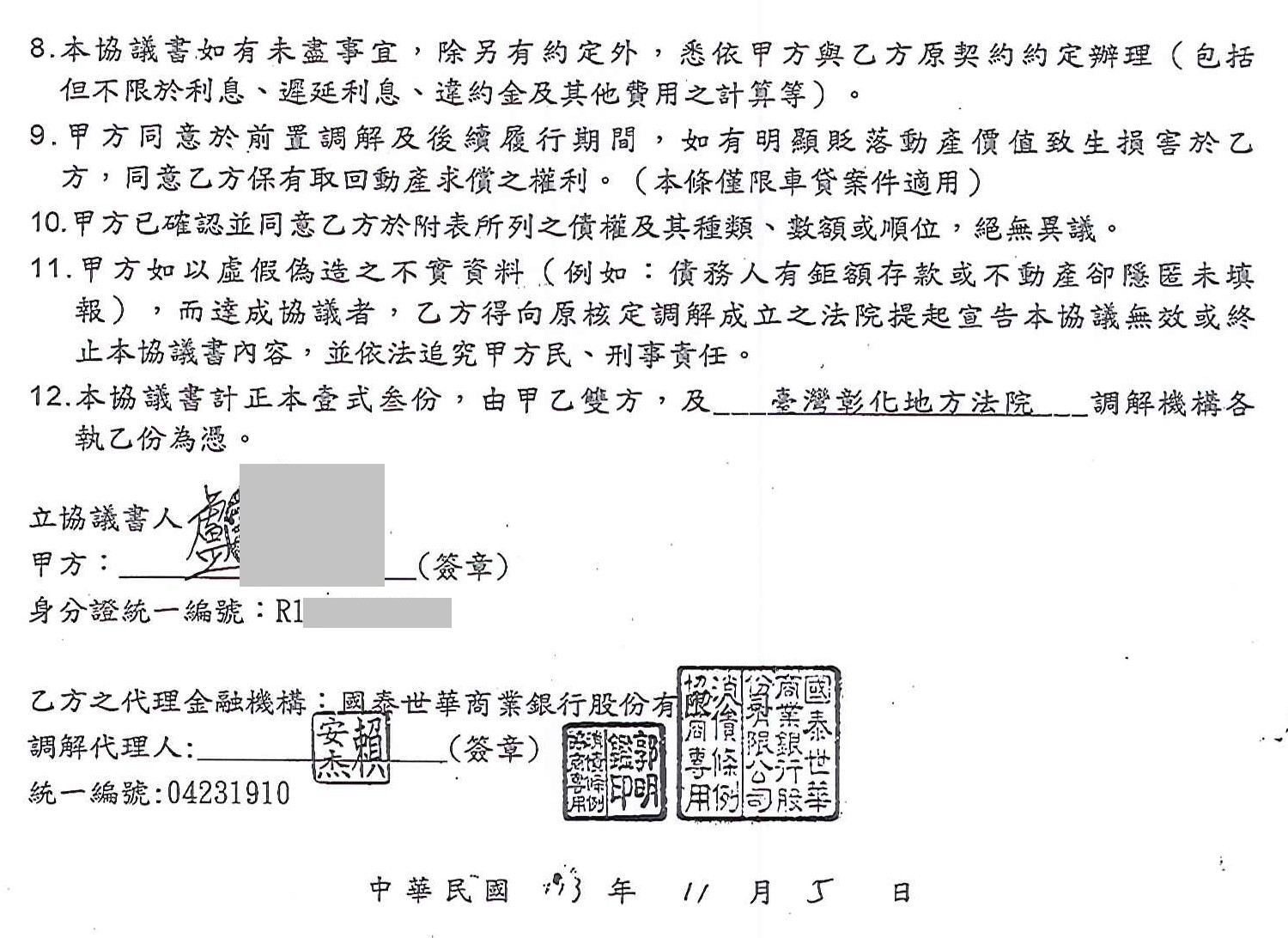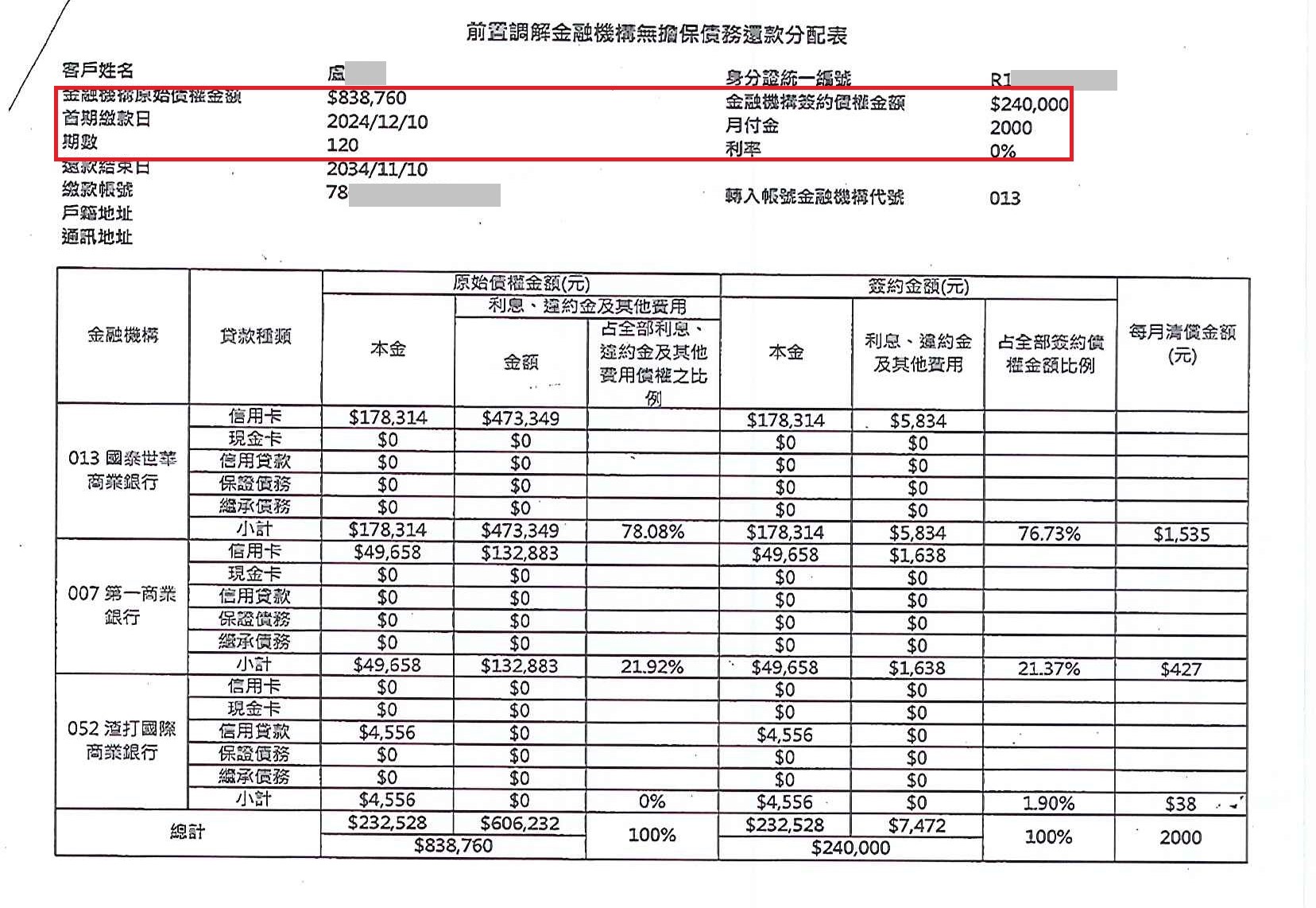 花旗銀行債務協商機制前置協商核准60期利息減免至0%月繳2953元